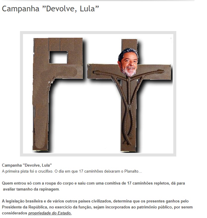 "Devolve, Lula": como a grande imprensa validou um boato de internet para acusar Lula de roubar um crucifixo que era seu — e como a Operação Lava Jato tentou tirar proveito disso.