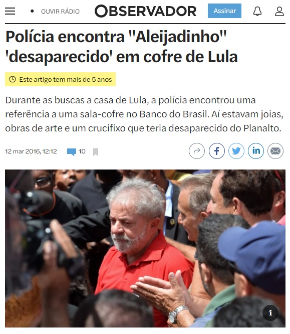 O estardalhaço da mídia ultrapassou as fronteiras nacionais e virou notícia no mundo inteiro — o ex-presidente brasileiro "surrupiara" obras de arte e joias "do Planalto". Em Portugal, noticiou-se que Lula havia roubado um Aleijadinho.
