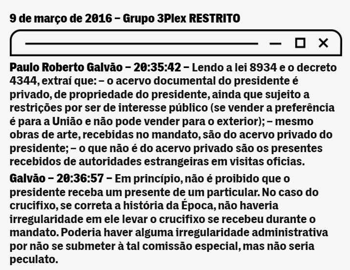 Foi somente após essa informação que os procuradores da Lava Jato resolveram olhar a Lei 8.934, que trata sobre os bens de ex-presidentes da República, e descobriram que Lula não havia cometido nenhuma irregularidade.