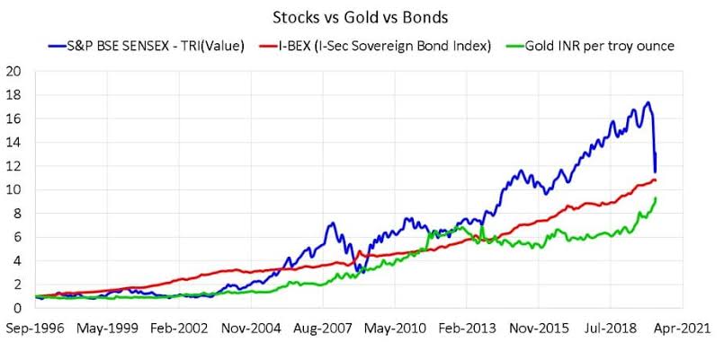 Here is chart of historical returns of Gold and Sensex and Sovereign bonds
