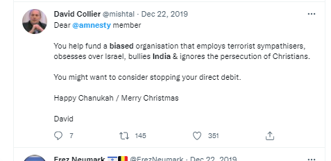 [Thread] 1/ Many Apartheid apologists like to use the argument that Amnesty is 'obsessed' with Israel, or 'biased' against Israel. Below are just a few examples of how every supporter of every state Amnesty writes about uses the same propagandistic 'bias argument'. Pattern much?