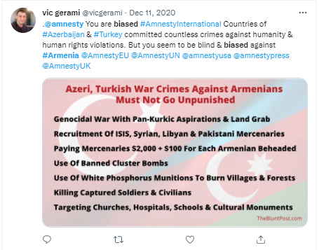 Need I go on? Safe to say, nationalists or propagandists will always accuse their critic of being biased against them. If Amnesty are biased against all human rights abusers, then good for them