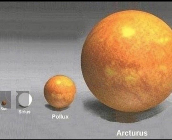 अच्छे से तुलना के लिए, आर्कटुरस (जो हमारे सूरज को भी छोटा कर दे ), मिल्की वॉयस में अन्य बड़े सितारों की तुलना में दिखाई देता है।