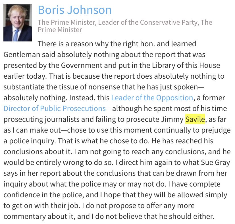 Quite the intervention. Former Conservative Chief Whip (who had previously condemned the PM's Savile intervention) links what happened to Keir Starmer with the Prime Minister's words.