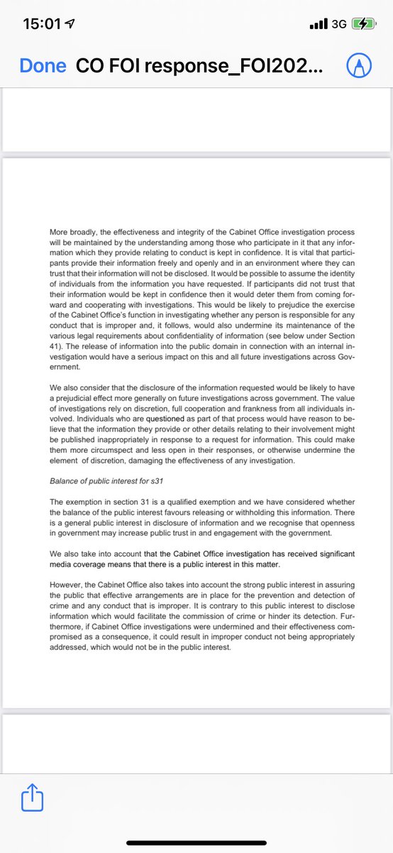 Here is page 1. It’s all clearly drafted by Cabinet Office lawyers. The original request went in in December. They are supposed to deal with it within 20 working days under the Act. This page proves they hold the info and believe they are exempt from the Act from giving it to you