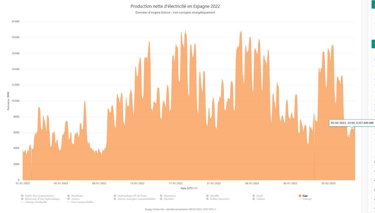 De plus,🇪🇸consommait 6.3GW de gaz alors qu'elle peut baisser à 3.5GW comme en début d'année