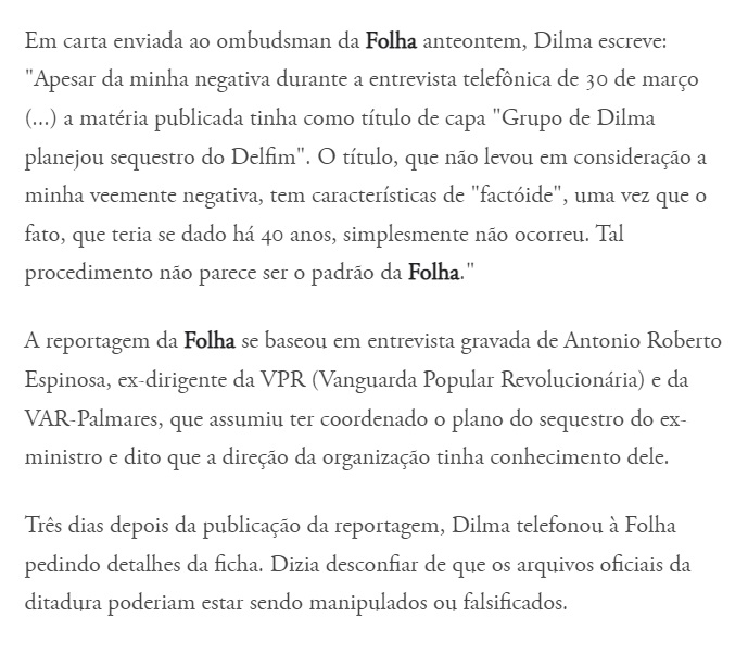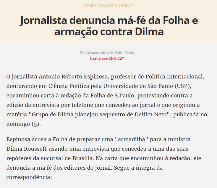 Segunda a Folha, a reportagem foi baseada em um depoimento de Antonio Roberto Espinosa, ex-comandante da Vanguarda Armada Revolucionária Palmares (VAR-Palmares) — grupo da esquerda radical que participou da luta armada contra a ditadura militar.