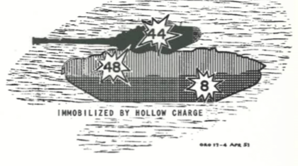 Site of hollow charge hits immobilising tanks were 44% turret, 48% hull and 8% suspension systems