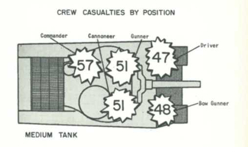 Limited data on allied tank crews showed an average of 2-2.5 crew members became casualties. This includes killed, wounded, missing.