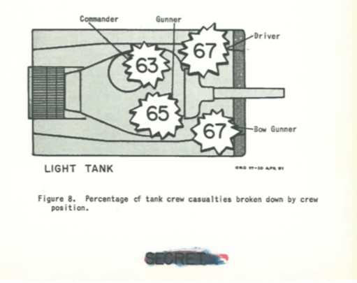 Staggeringly these figures in another report show that 40% of these casualties occurred outside the tank. 11-30% of total losses attributed to crew trying to escape from the tank.