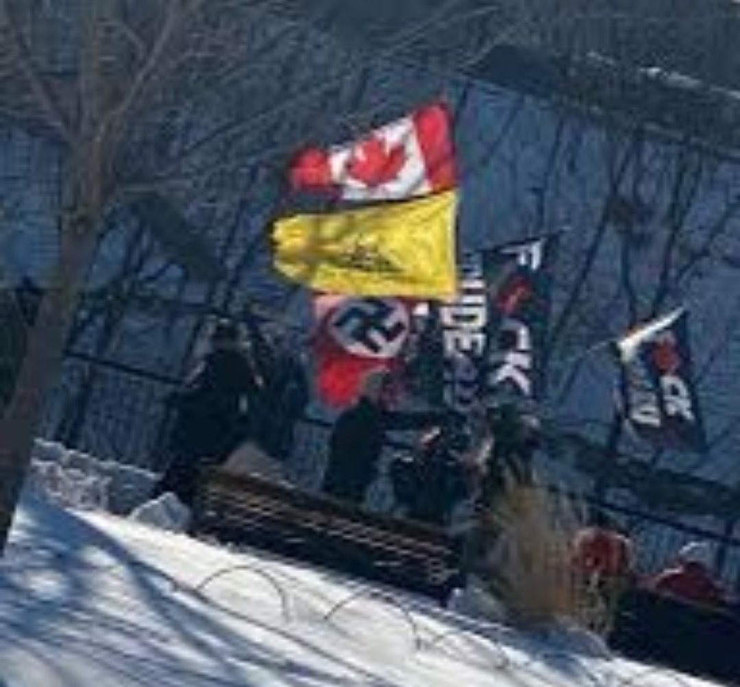 not only are these swastika loons incredibly scarce, but even the scattered swastikas pictured at protests all seem aimed at *impugning* Trudeau etc as Nazis. This is obviously a brain-dead protest tactic. But it's the opposite of pro-Nazi: Theyre using Nazi as a term of abuse...