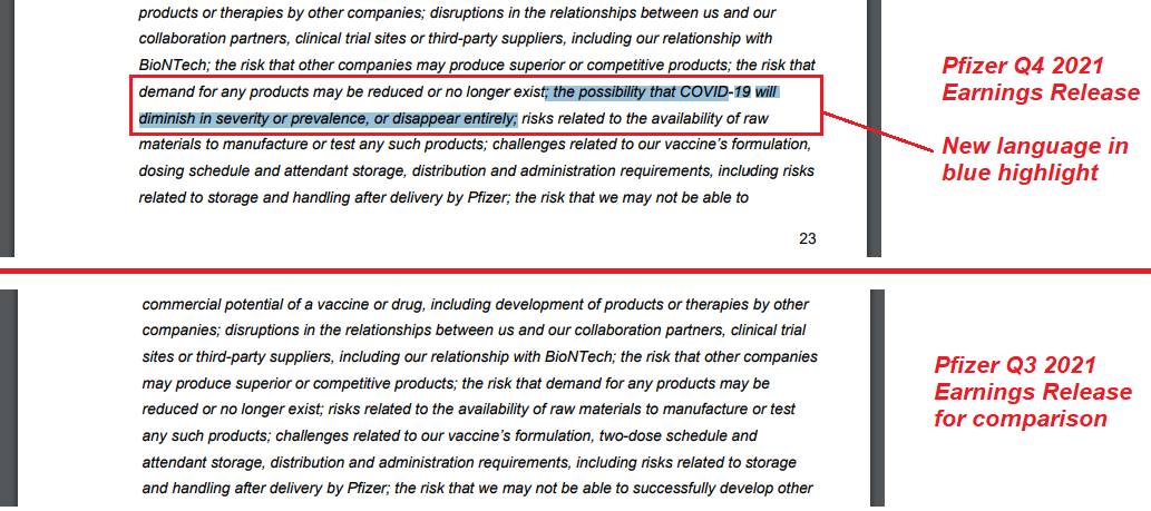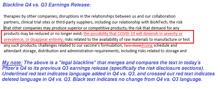 Pfizer added new and peculiar items deep in its business risk disclosures re: clinical trial data, today in its Q4 earnings.