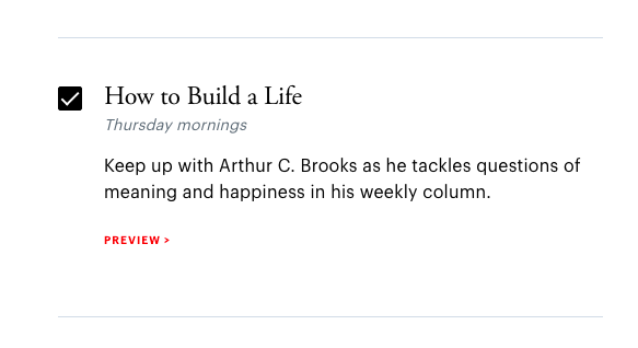 @arthurbrooks 4/4 Want to hear more from @arthurbrooks? Sign up to get new editions of his “How to Build a Life” column delivered straight to your inbox each week. 📨 bit.ly/3GxQNqV