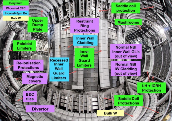 Début des années 2010, JET est profondément modifié pour adapter sa paroi interne en ligne avec ce qui est prévu pour ITER: première paroi en beryllium et divertor en tungstène