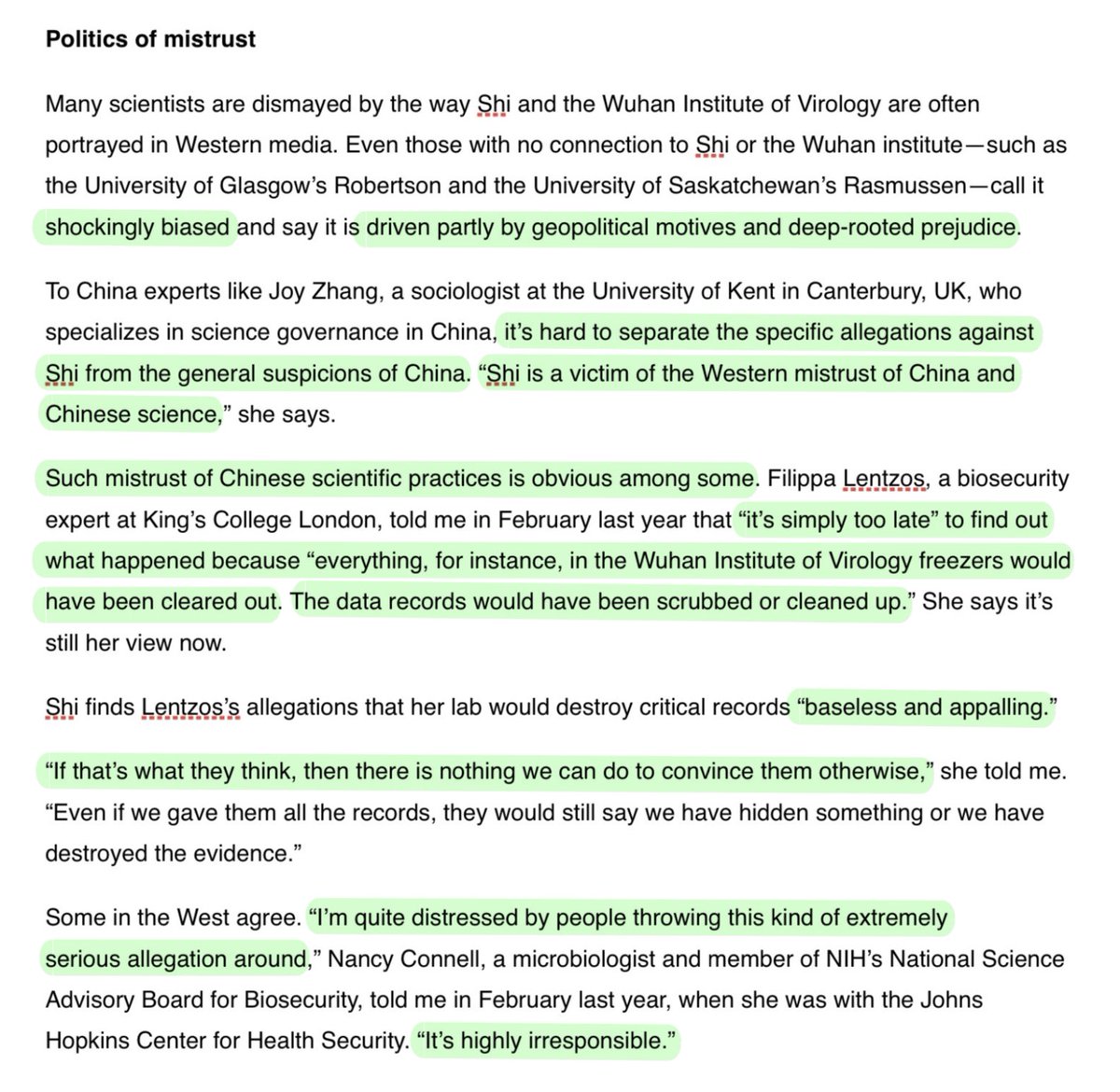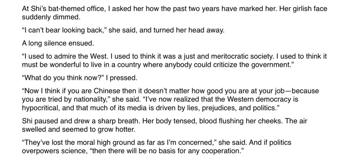 It’s hard to separate allegations against Shi from general suspicion of China:“Shi is a victim of the Western mistrust of China & Chinese science,”says @DrJoyZhang
