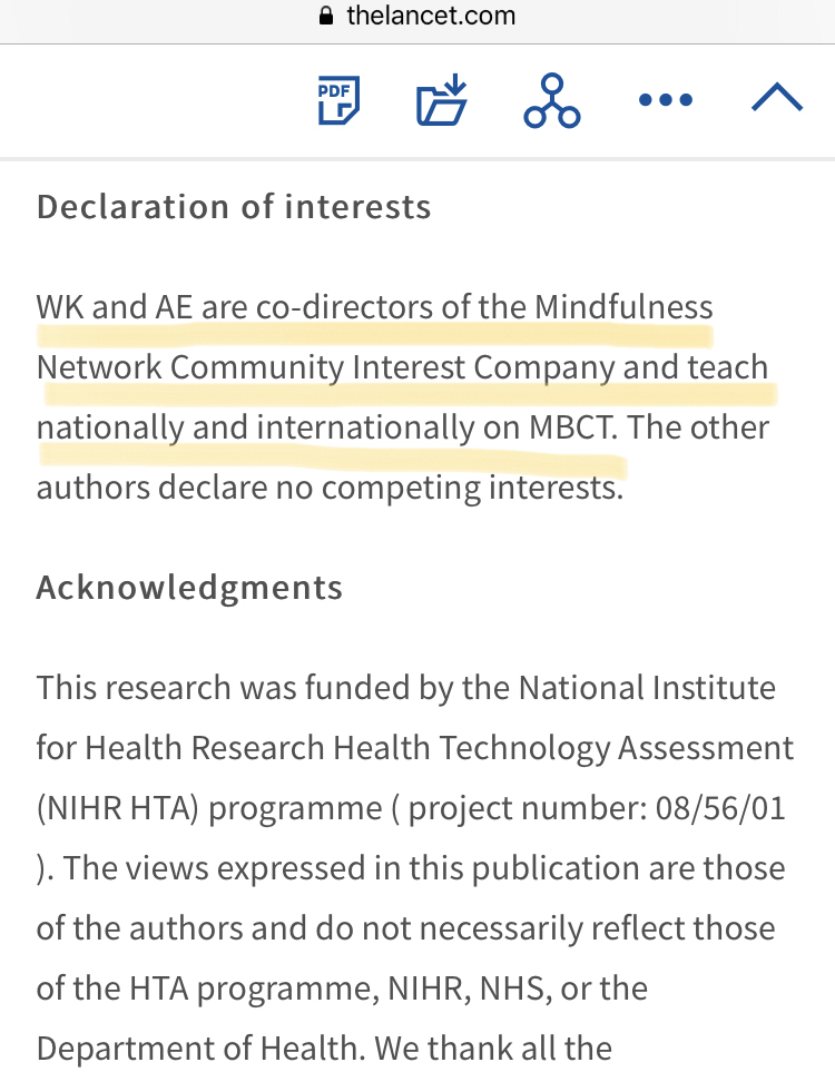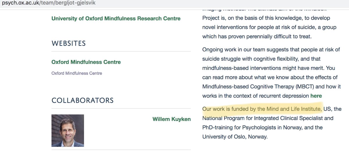 - L’auteur principal est directeur d’un institut de recherche (Uni Oxford) en partie financé par le même Mind and Life Institute à l’origine...