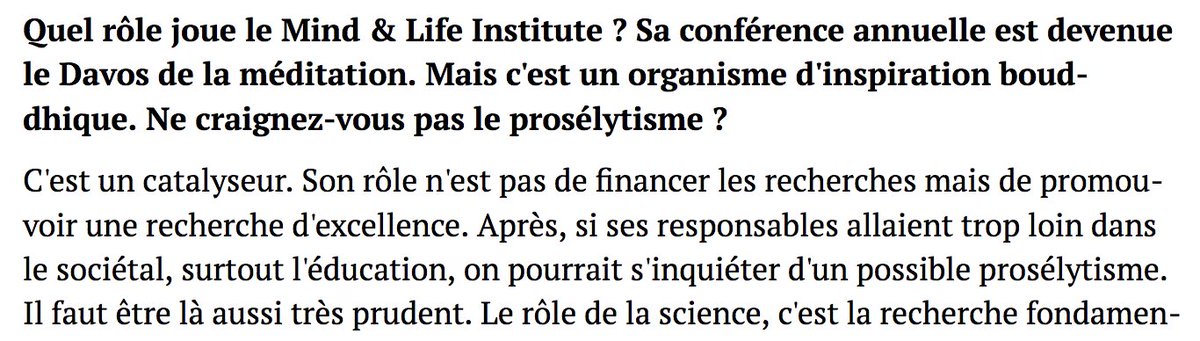 D'après le chercheur Antoine Lutz (interview Le Point), le rôle du Mind & Life Institute est de "promouvoir une recherche d'excellence". Autant pour moi... 🧐