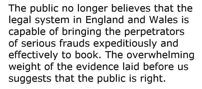 But Suella Braverman is kidding herself if she thinks this review will fix the government’s utterly hopeless approach to tackling fraud. When Lord Roskill’s 1986 report led to the creation of the SFO, this was what he said in Para 1, Page 1. Would he say any different today? 8/9