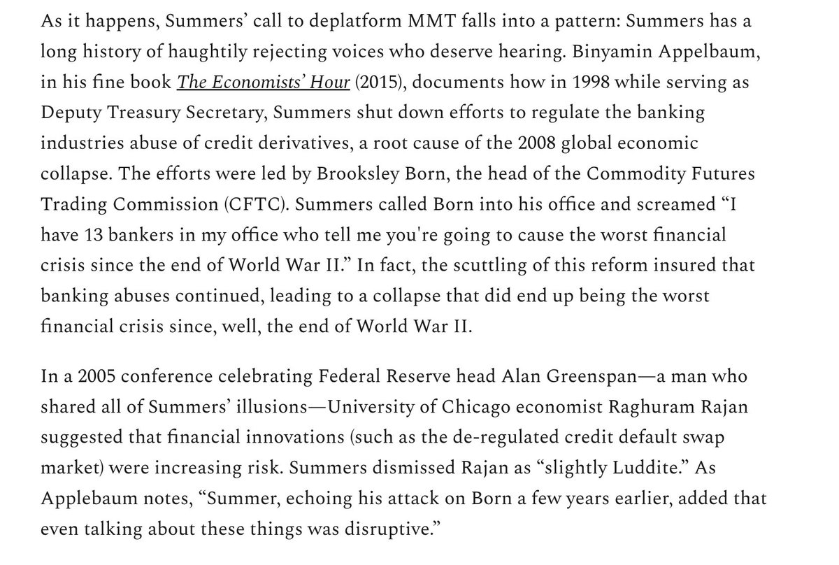 4. As @BCAppelbaum documented in his fine book The Economists' Hour, in 1990s & later Summers specifically thwarted efforts to by Treasury staff & economists to fix lending and stop the housing bubble from getting out of control.