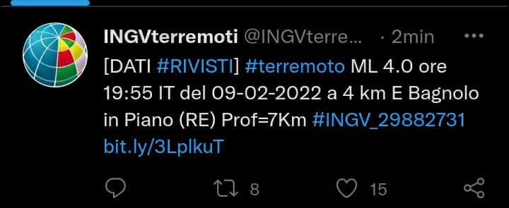 ❗BREAKING: Terremoto nella provincia di Reggio Emilia con magnitudo stimata tra 3.9 e 4.4