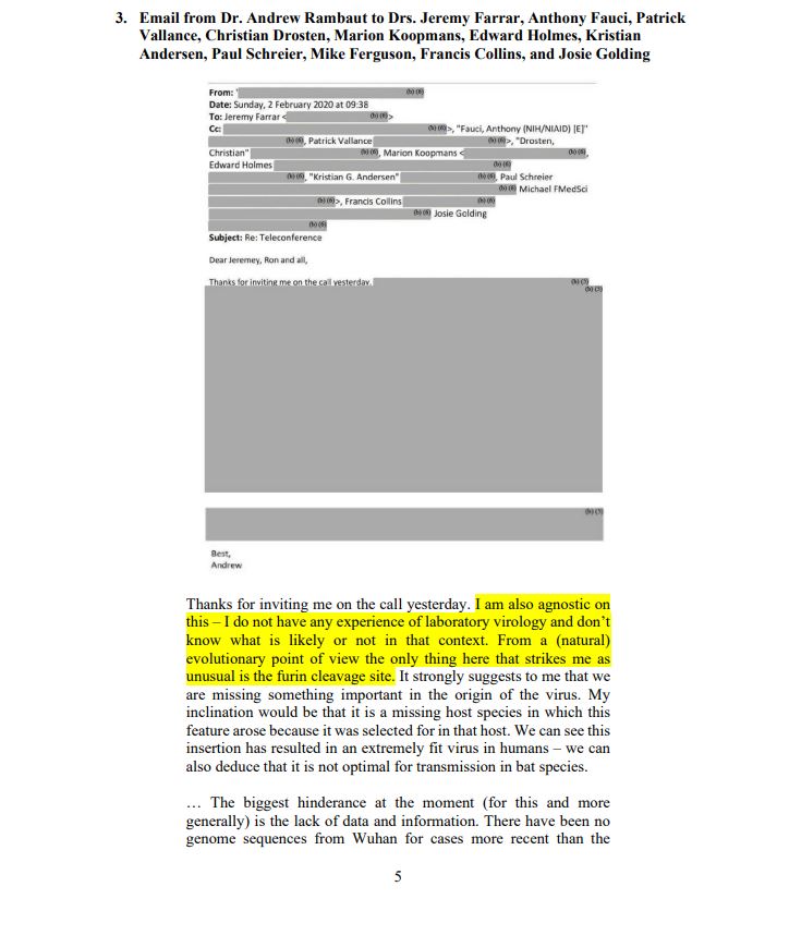 Hier die Fauci Email als Beleg, dass Drosten schon im Februar 2020 sehr wohl wusste, dass es Hinweise auf ein LabLeak gibt: #DrostenLügt