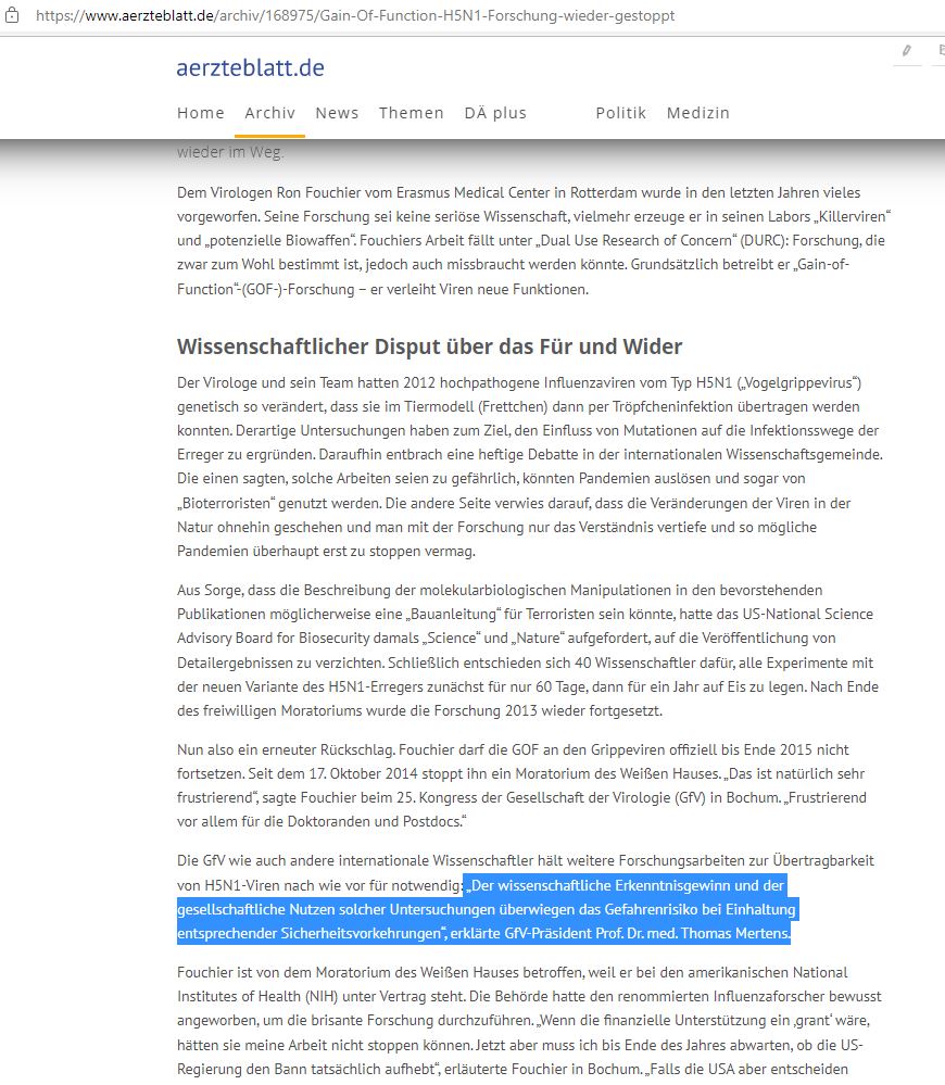 Pikant: Auch der heutige Stiko Chef Thomas Mertens lobbyierte 2015 für unregulierte Gain-Of-Function Experimente: