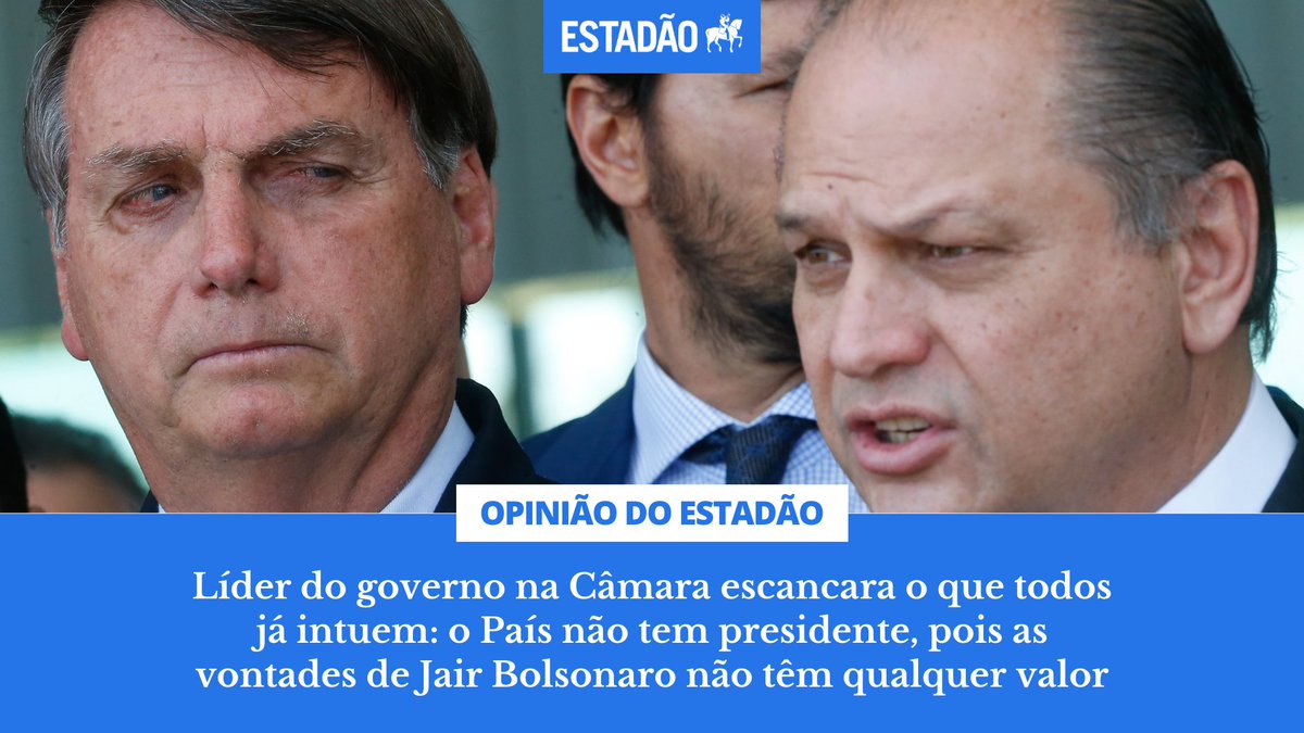 EDITORIAL: Líder do governo na Câmara escancara o que todos já intuem: o País não tem presidente, pois as vontades de Bolsonaro não têm qualquer valor opiniao.estadao.com.br/noticias/notas…