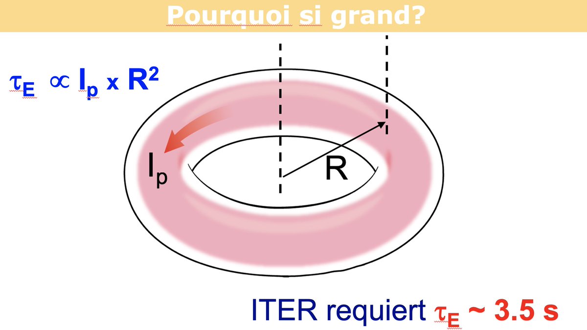 La taille d'un tokamak est un paramètre important. Le temps de confinement dépend du courant électrique, du champ magnétique et de la taille.