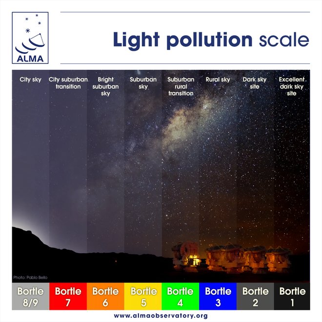 você pode consultar a poluição luminosa de qualquer região usando o lightpollutionmap.info