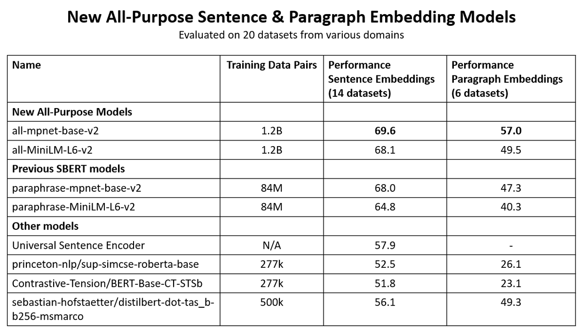 🚨 All-Purpose Sentence & Paragraph Embeddings Models