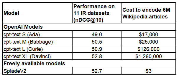 💰 Encoding costs? $1,000,000 for GPT-3 vs. $3 for SpladeV2