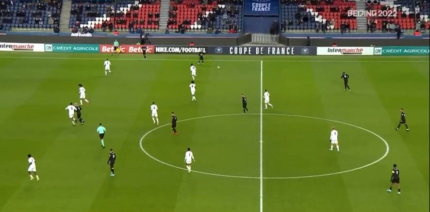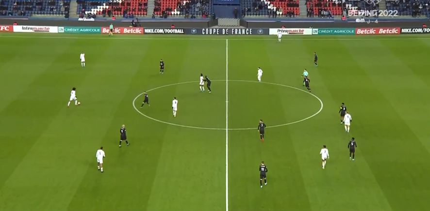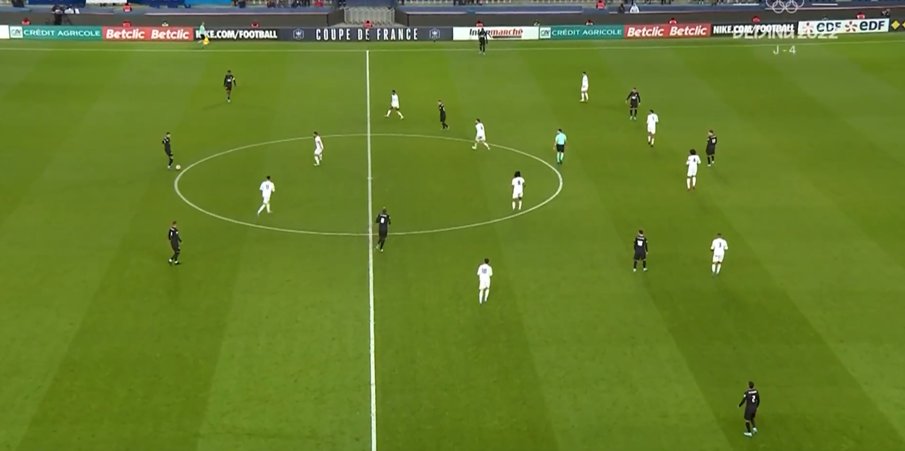 📉La clave para replegarles en 4-4-2 | Aunque el PSG tuvo varias bajas en el partido de Copa, el Nice fue un equipo que expuso algunas de las carencias de los parisinos en salida de balón. Le taponó el carril central, no cayó en sus trampas y le obligó a salir por fuera.