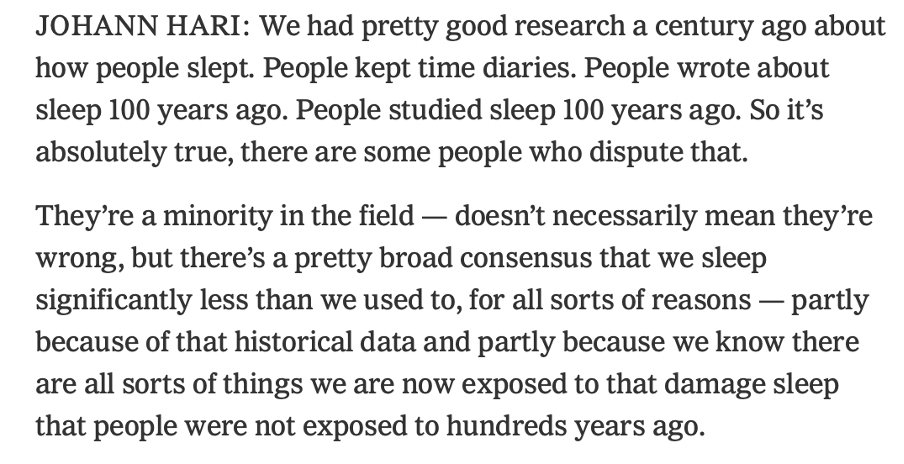 Fascinated to read in @Londoners_Diary that someone has put my criticisms of Stolen Focus to @johannhari101 and that he replied by saying that the "attention crisis" is real because "we sleep less than we did in the past". standard.co.uk/news/londoners…