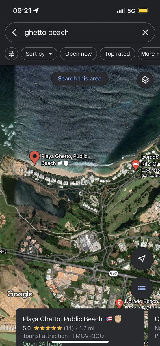 In response, Puerto Ricans re-upped the pin and left a bunch of reviews. They’ve even created another pin called “Playa Ghetto, Public Beach 🇵🇷 ✊🏼”