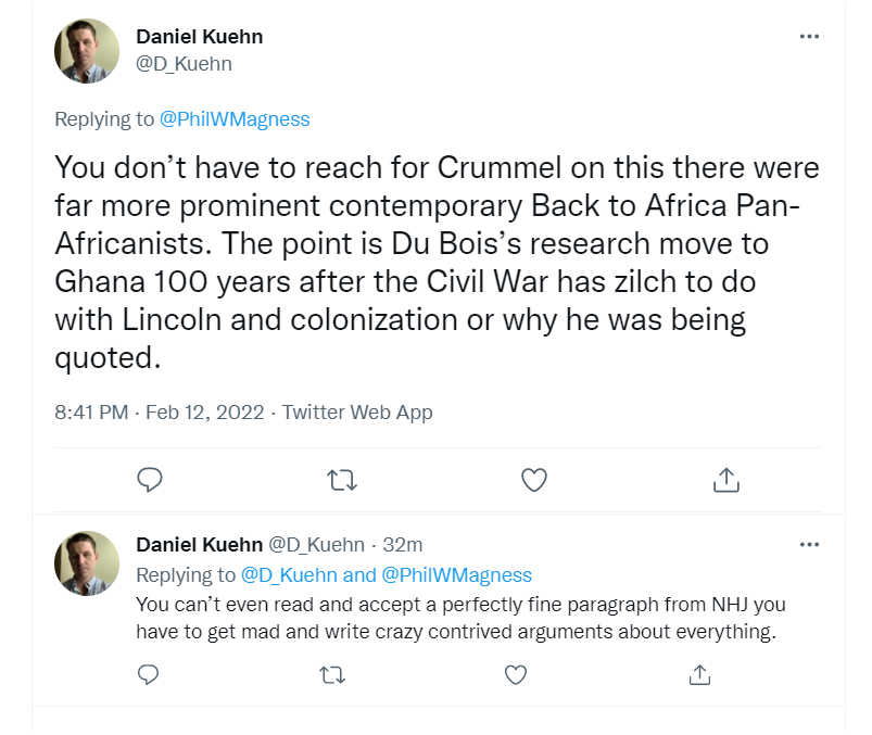 Du Bois, of course, was deeply influenced by Crummell...which @d_kuehn would know if he bothered to read Du Bois's works, as opposed to simply name-dropping him to signal political affiliation with the 1619 Project crowd.