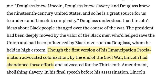 In the months after the 1619 Project came out, NHJ repeatedly cited my work to show that Lincoln never abandoned colonization.
