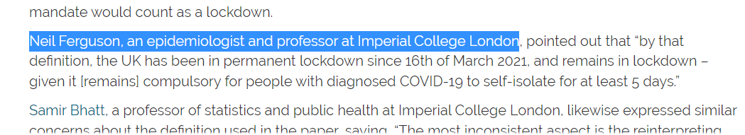 The @healthfeedback report quotes Ferguson to accuse the JHU authors of an overly expansive definition of lockdowns. It would appear that Ferguson did not read the JHU paper, as they define "lockdowns" to exclude voluntary measures, but only include mandates.