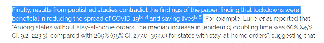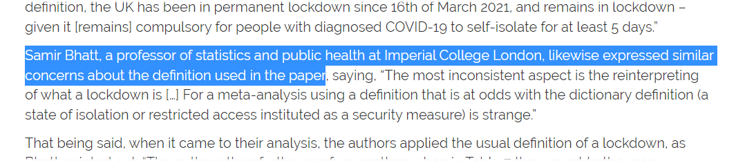 1. Uses non-neutral "experts" like Flaxman, Ferguson, and Bhatt as its jury on a paper that specifically criticizes the methodology of a pro-lockdown study by...Flaxman, Ferguson, and Bhatt.