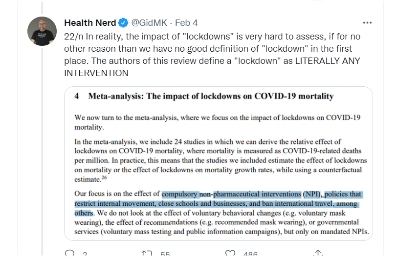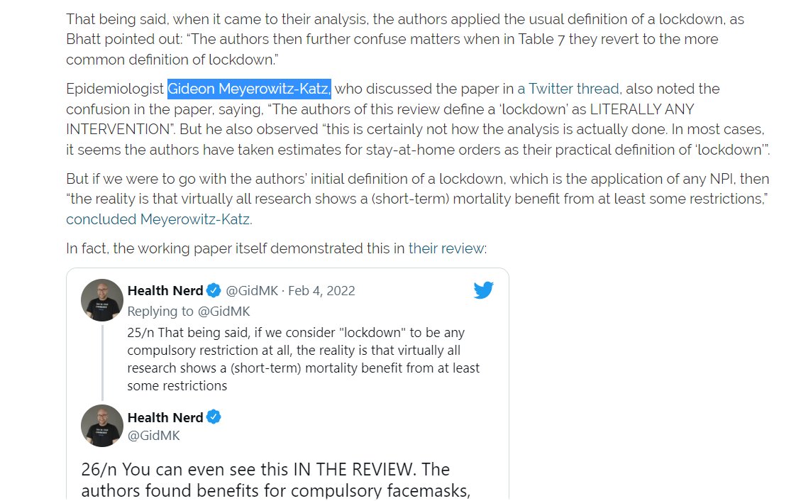 @HealthFeedback 4. Caps it all off by cherrypicking a half-dozen or so pro-lockdown studies out of hundreds of papers published on this subject, and declaring that they are correct.