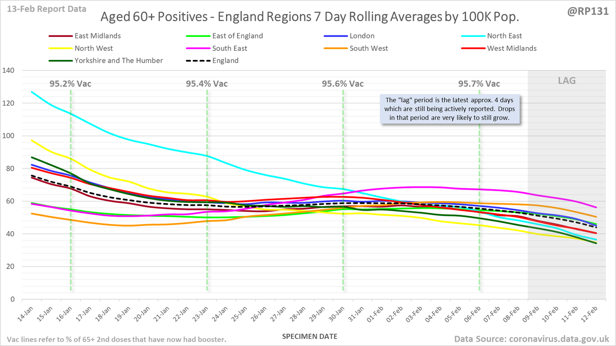 England regional rolling average positives (per 100K population) in the 60+ age range: