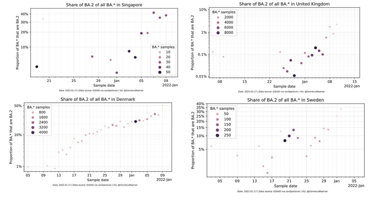 BA.2 share 32 mutations with BA.1, but it also has 28 (!) unique mutations.