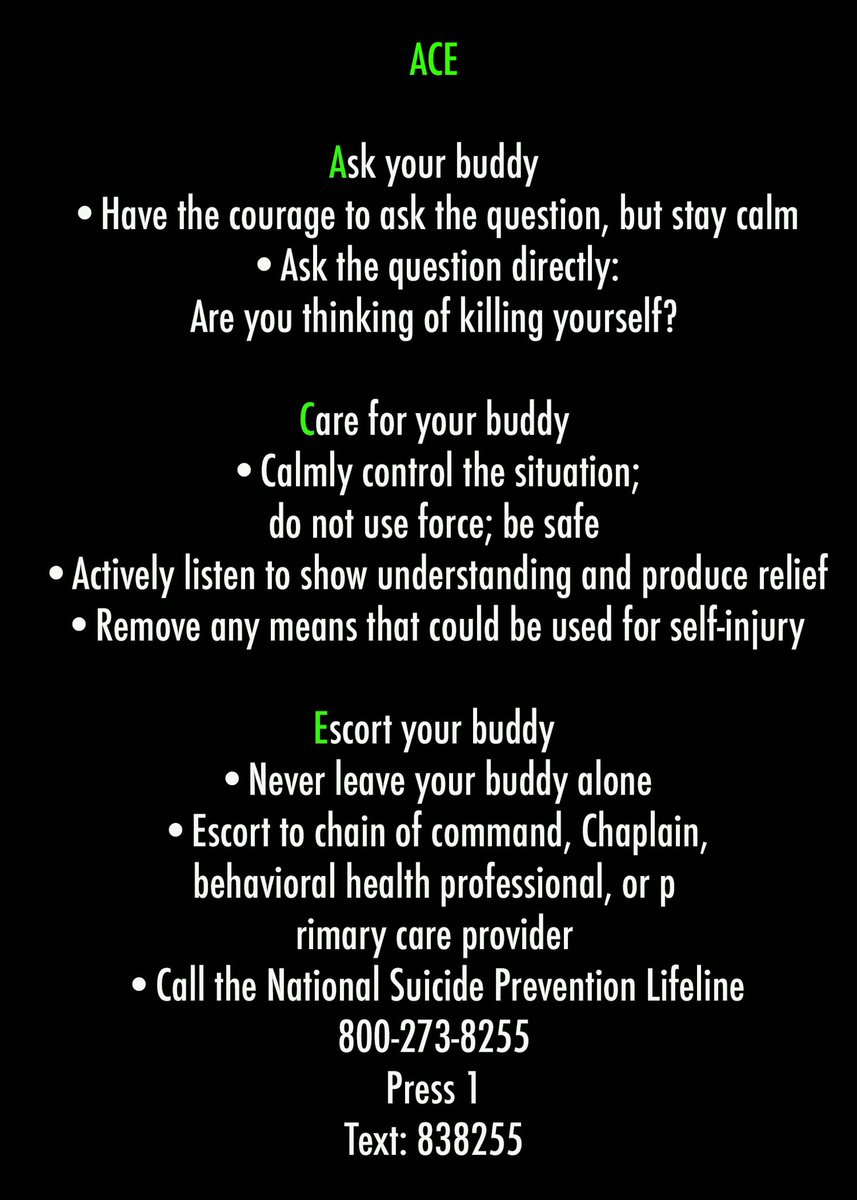 Please save and use all graphics in this thread. Especially the ACE cards. Print these graphics and hang in places where Vets have access to them. Carry the ACE cards in your wallet.