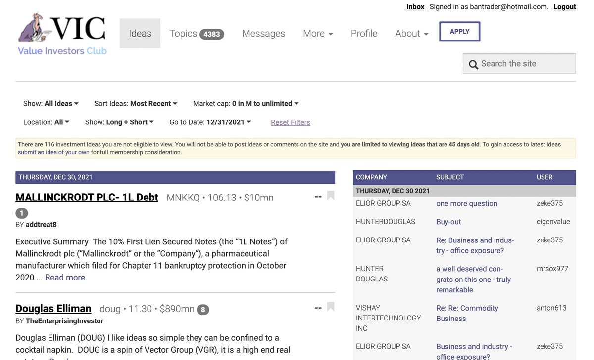 Una página que no puede faltar es Value Investor Club, creada por J.Greenblatt, se rumorea que es más fácil entrar en la universidad de Harvard que te acepten en su web para publicar ideas de inversión, encontraréis muchísimos análisis de calidad