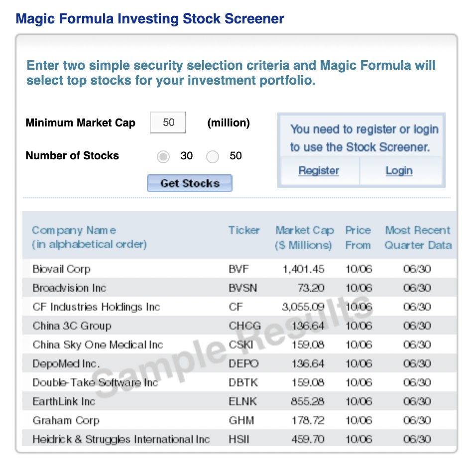 Hablando de Joel Greenblatt, aquí tenéis la página de su Magic Formula que comenta en su libro El pequeño libro que bate al mercado, donde explica una estrategia de inversión sencilla para tratar de batir al mercado magicformulainvesting.com