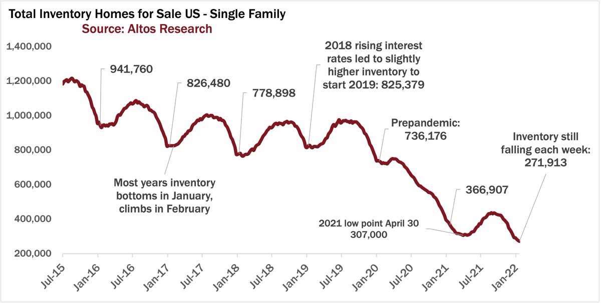 We hit a new record low in available inventory. Under 250k single family homes active. Another 70k listed this week.