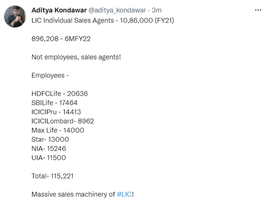 - No other life insurer anywhere globally enjoys such a large market share as LIC