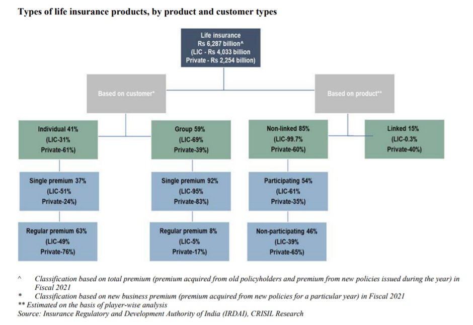 - Losing market share: LIC holds a 64% share by the total life insurance premium. It grew at 9% CAGR from FY16-21 (Private insurers grew 18% CAGR)