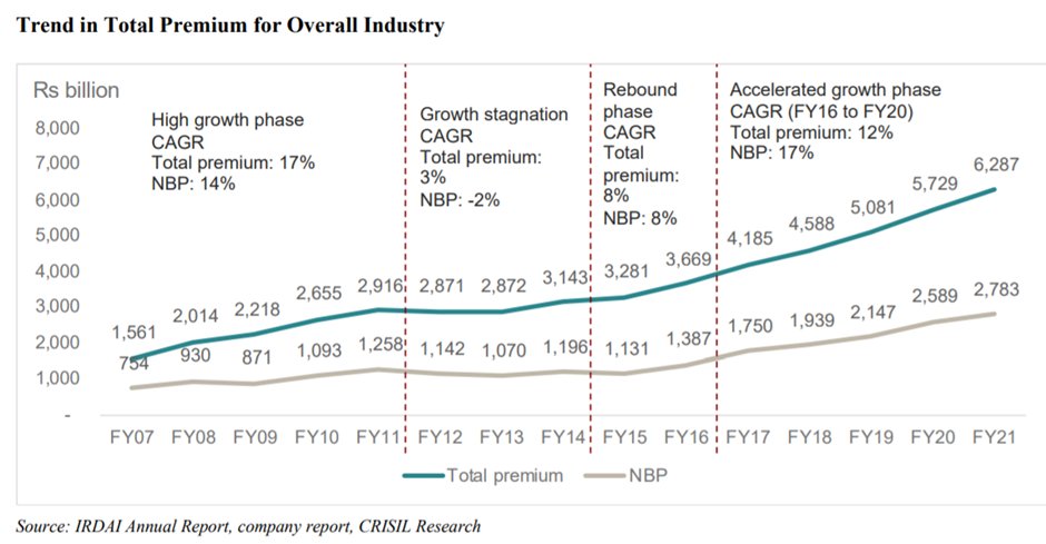The industry’s total premium has grown at 11% CAGR in the last 5 years ending in Fiscal 2021