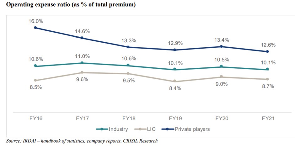 - Scale of LIC leads to much better-operating expense ratios: years/decades before private players challenge LIC on this aspect