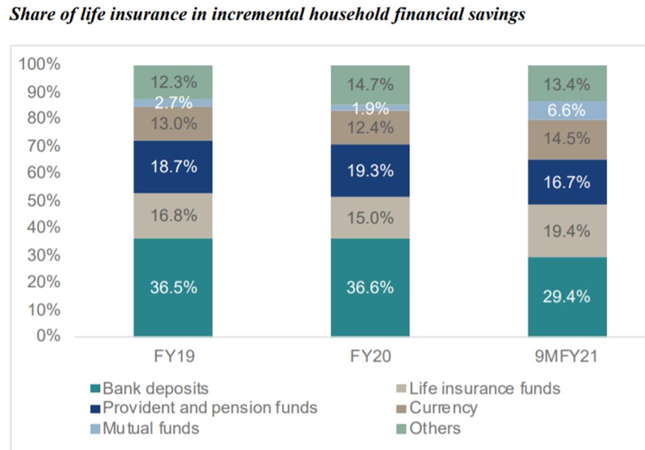 - Most of the incremental household financial savings are flowing toward insurance & MFs. The financialization of savings is here
